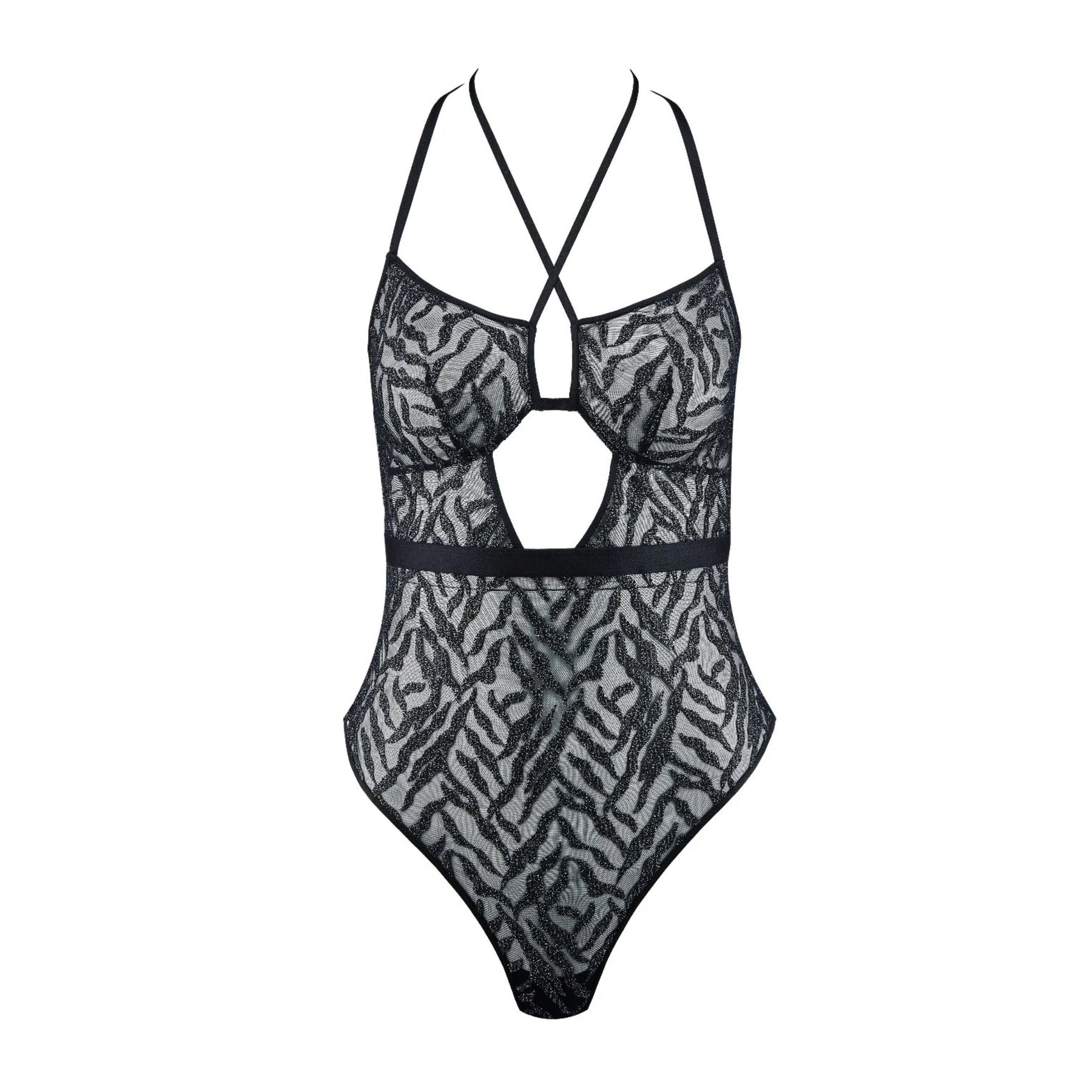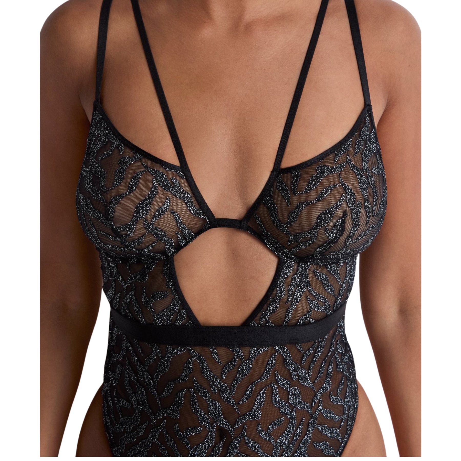 Molto seducente, il body Moonlight Shadow veste il busto con i suoi ricami metallizzati, tra eleganza e modernità. Stringendo la vita, offre un décolleté profondo, esaltato da un gioco di tagli e lacci sexy. Sul retro, offre una vertiginosa schiena nuda, sapientemente strutturata da forme grafiche molto contemporanee.