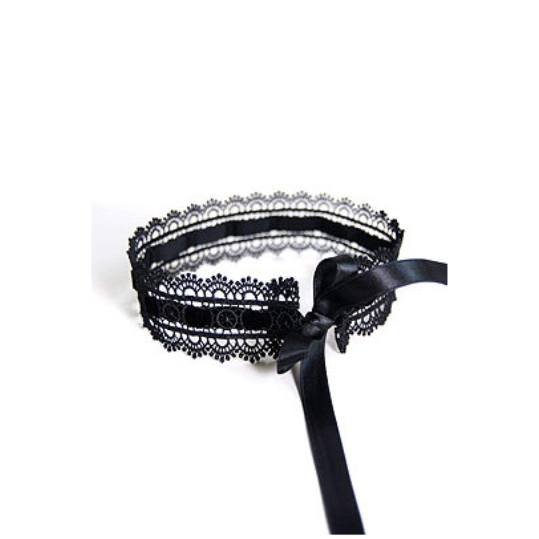 Romantico girocollo in pizzo decorato con un morbido nastro di velluto al centro e legato con nastri di raso double-face – larghezza circa 3,5 cm.
