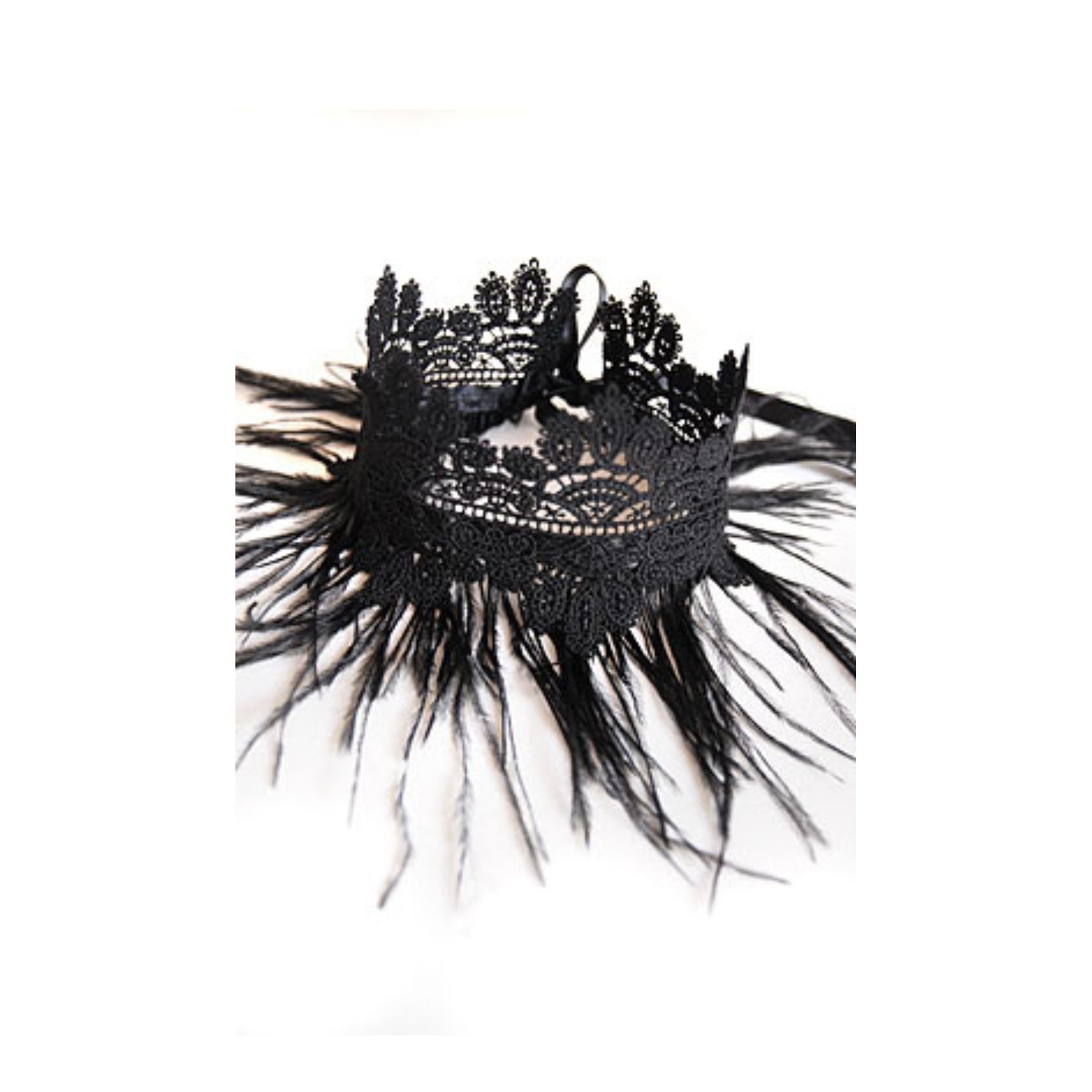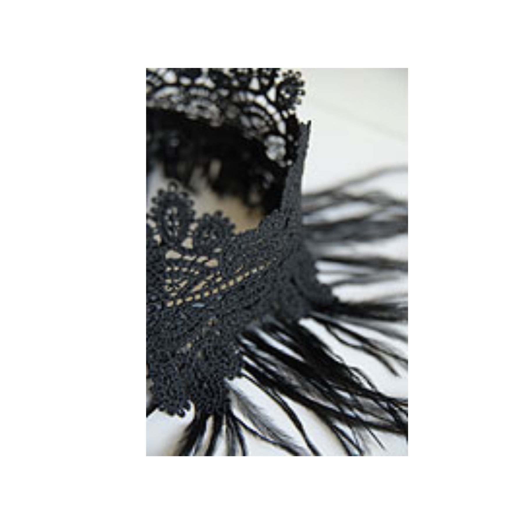 Collare in pizzo largo 8 cm con piume di struzzo abbinate con double face da annodare.