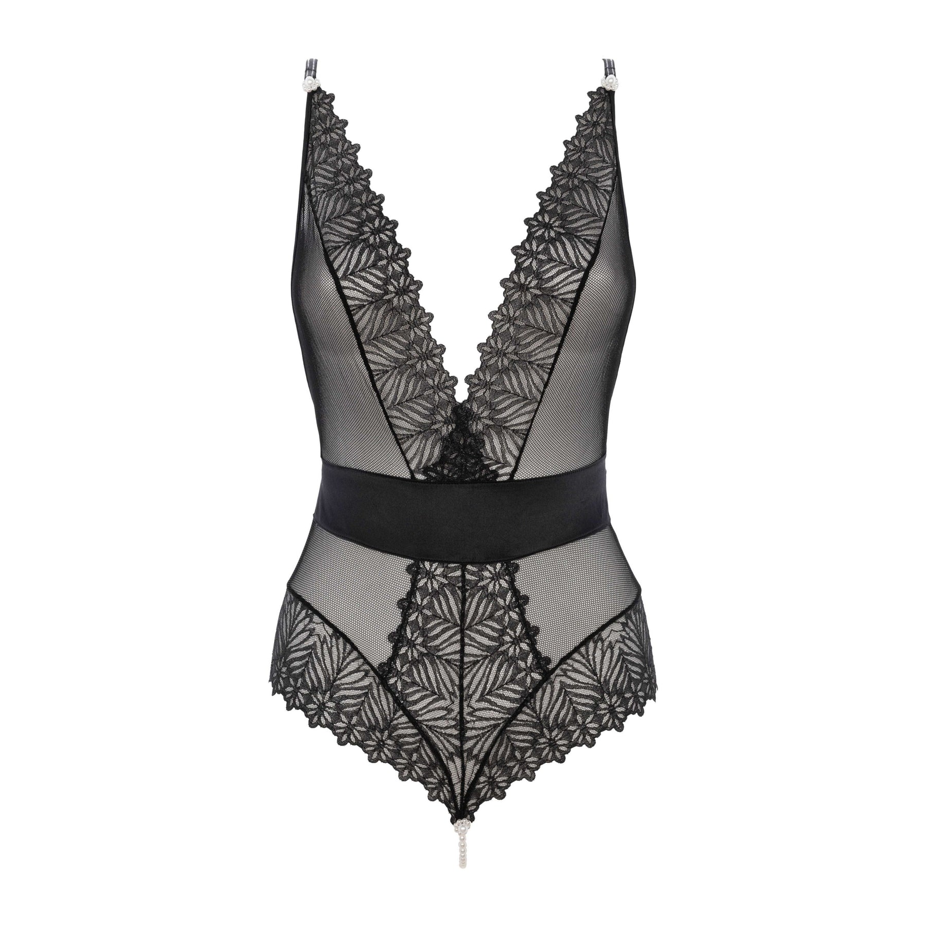 NOTA: a causa del taglio del body, si consiglia di indossarlo dalla testa e poi unire il laccio con la collana di perle nella parte posteriore.