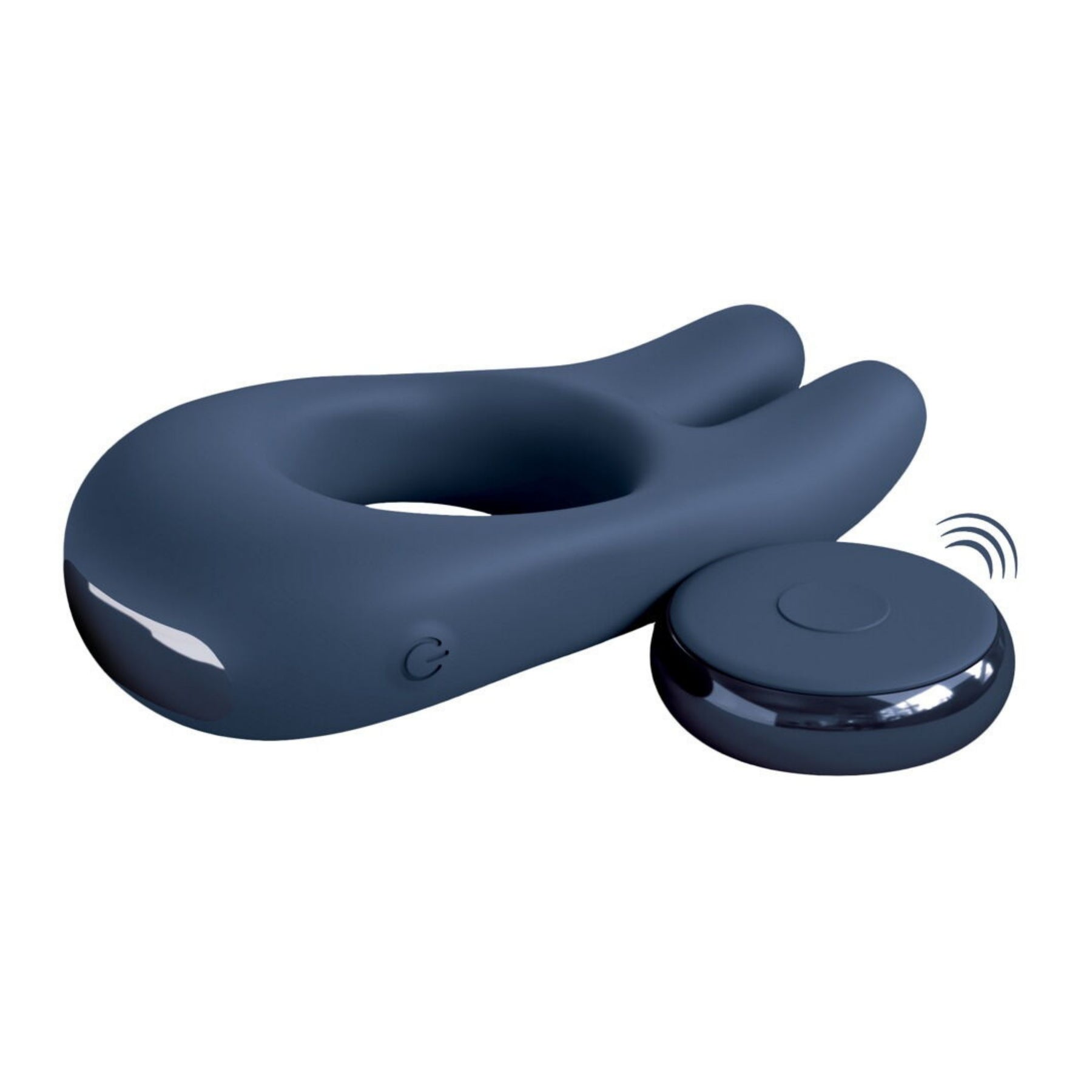 Anello per cazzo vibrante impermeabile Deimos di JimmyJane con 2 stimolatori clitoridei. Ogni stimolatore è dotato di un piccolo e potente motore. 10 modalità di vibrazione comodamente controllate dal telecomando forniscono un'eccitante stimolazione aggiuntiva durante il sesso. L'aderenza dell'anello favorisce anche l'erezione grazie all'effetto di congestione del sangue. Questo giocattolo in silicone setoso può essere utilizzato anche come vibratore da appoggiare quando si gioca da soli o in coppia.