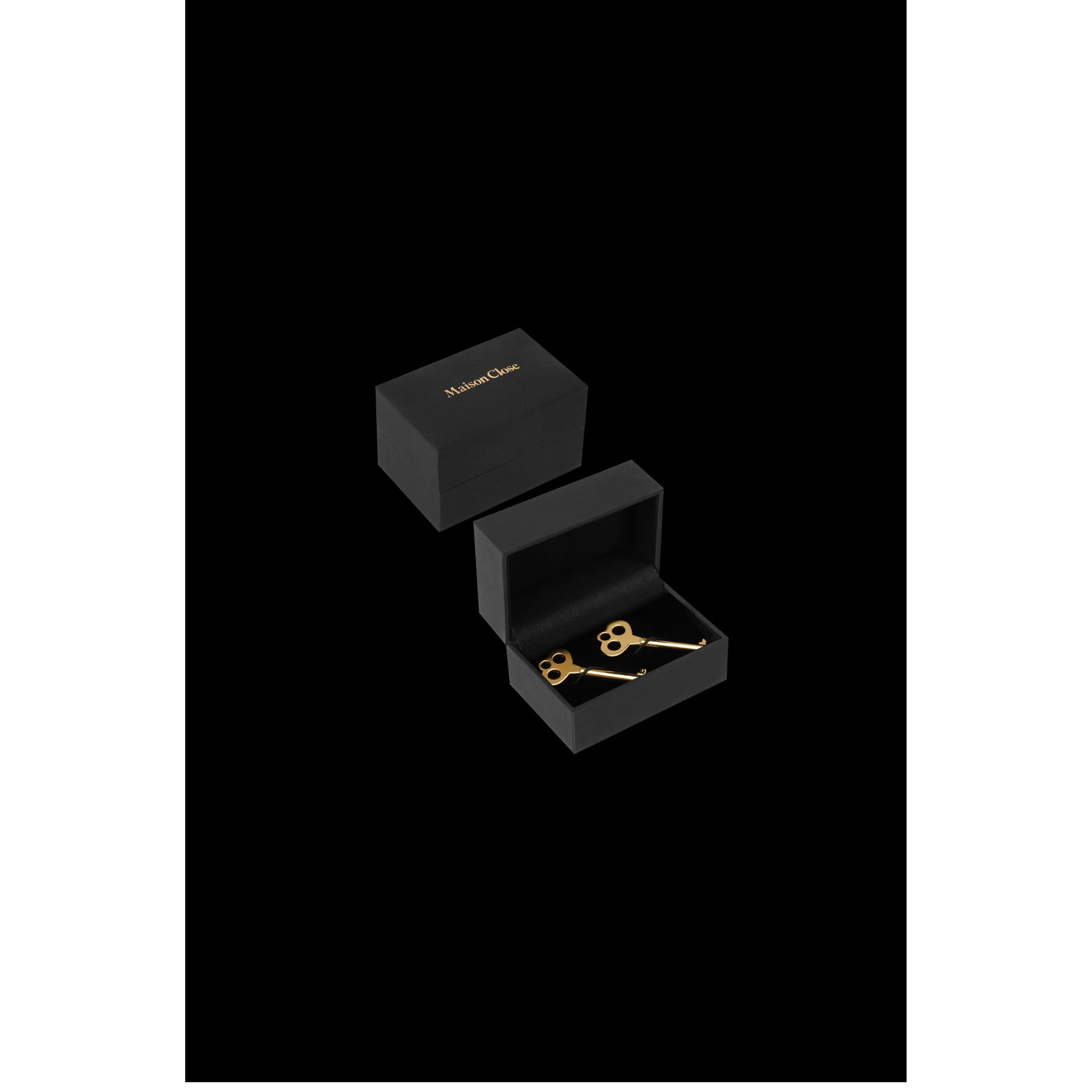 Made of black lacquered wood, it features a gold metal signature on the lid, Queen & King, hand-embossed like a reinterpreted royal crest. The interior is lined with deep purple velvet, the identity tone of the Maison, evoking cushioned alcoves where secrets are passed. Two gold keys allow you to close the box and keep a secret until the moment of revelation. A collectible item, both a treasure chest, a tool for play, and a vehicle for allusion.