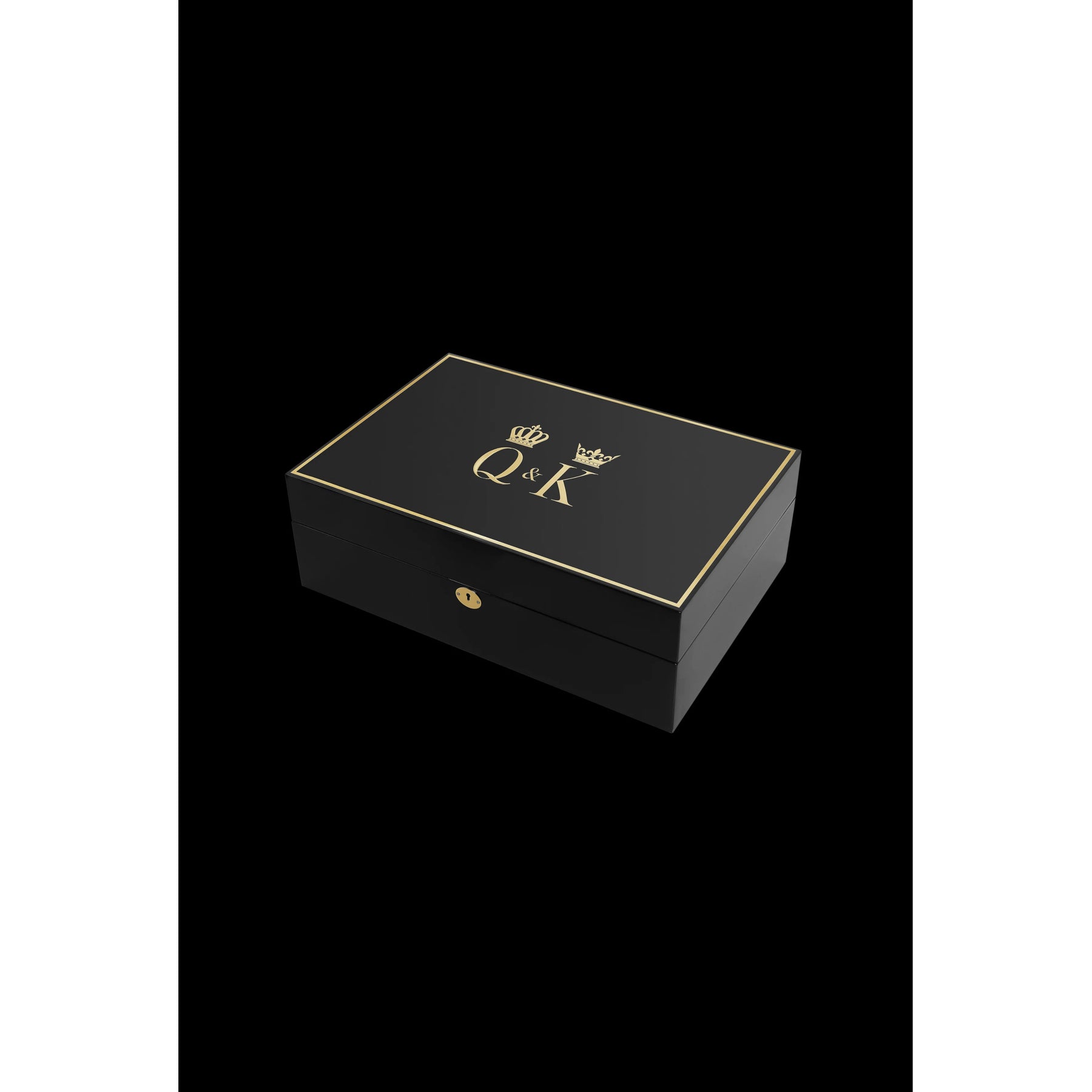 • Black lacquered wooden box with hand-applied gold Q&K brand