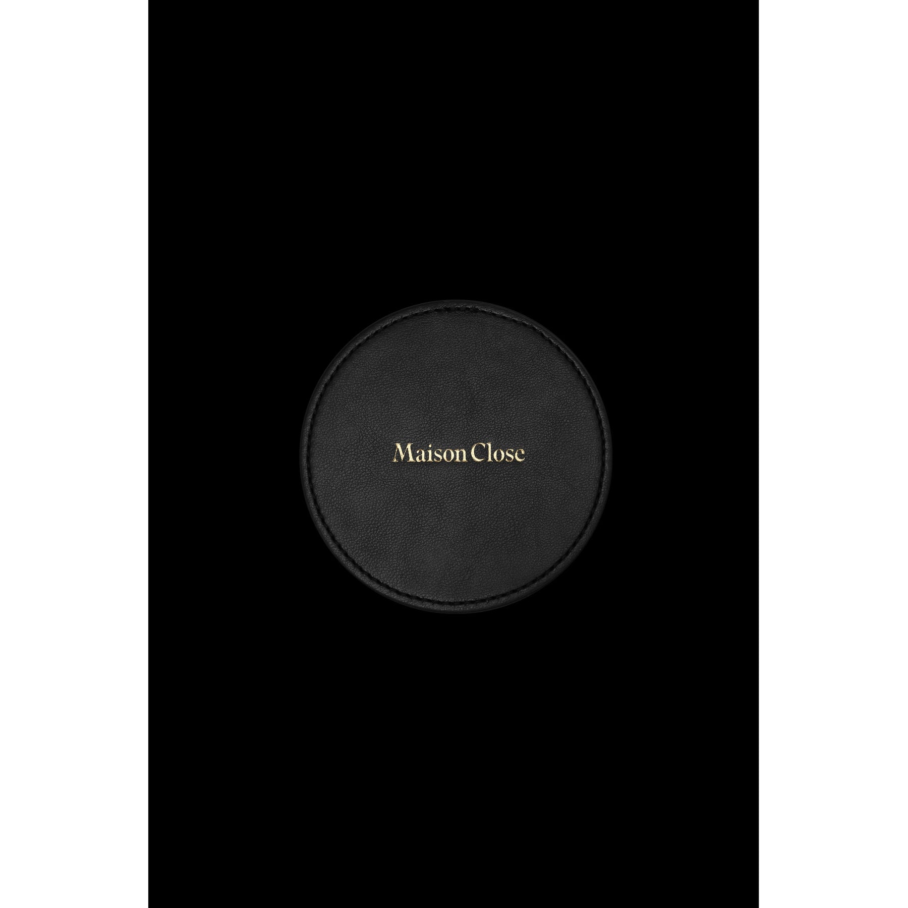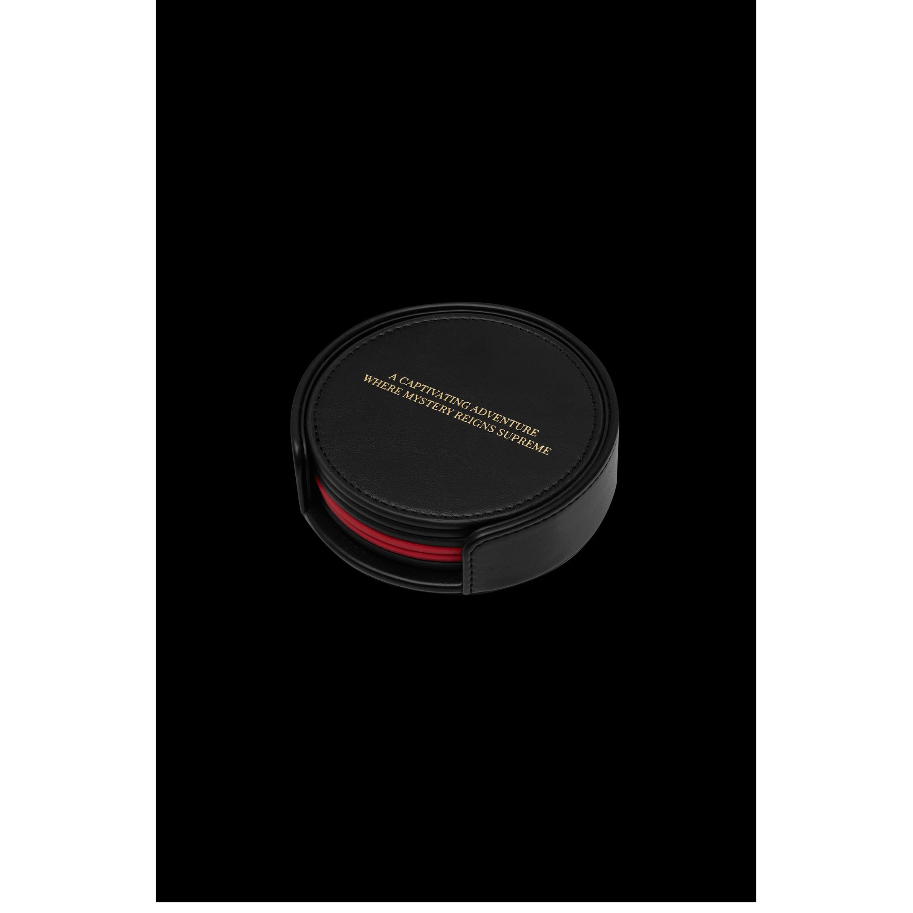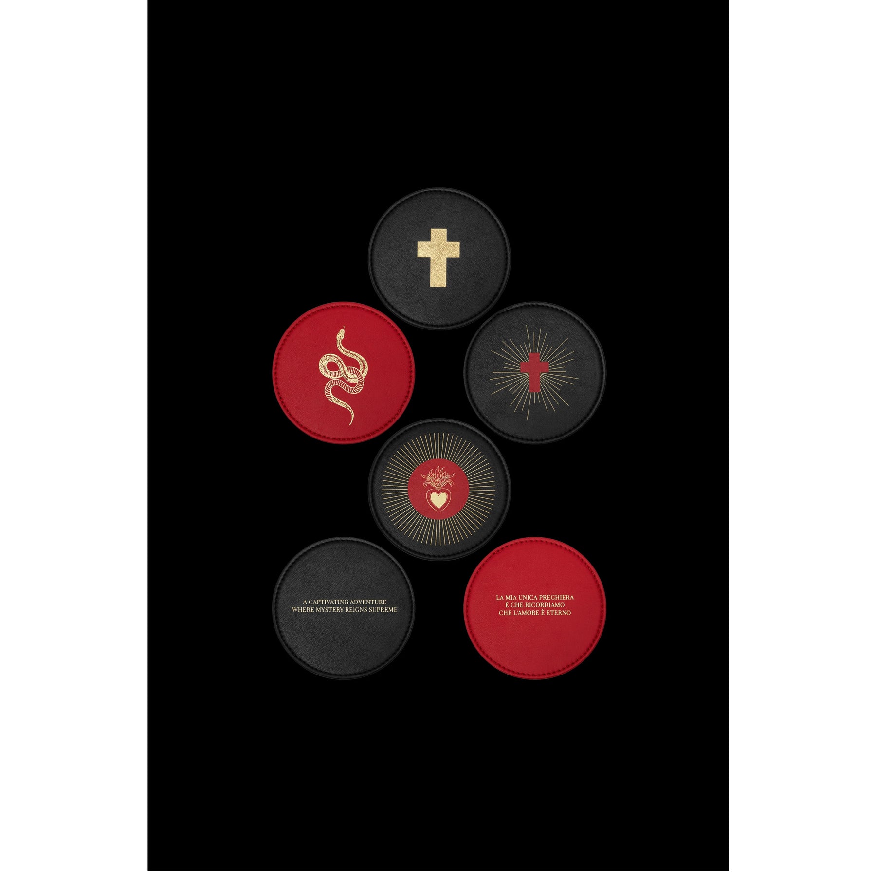 VINO VERITAS riunisce un set di sei sottobicchieri decorati con simboli emblematici, omaggio alle collezioni iconiche della Maison, che infondono un tocco di mistero al tempo stesso prezioso e spirituale. Due rossi vividi e quattro neri dialogano in un contrasto elegante. Ogni pezzo è rifinito con bordi tinti e impunture tono su tono per una finitura sofisticata. Il retro è impreziosito dal logo Maison Close impresso a caldo in oro.