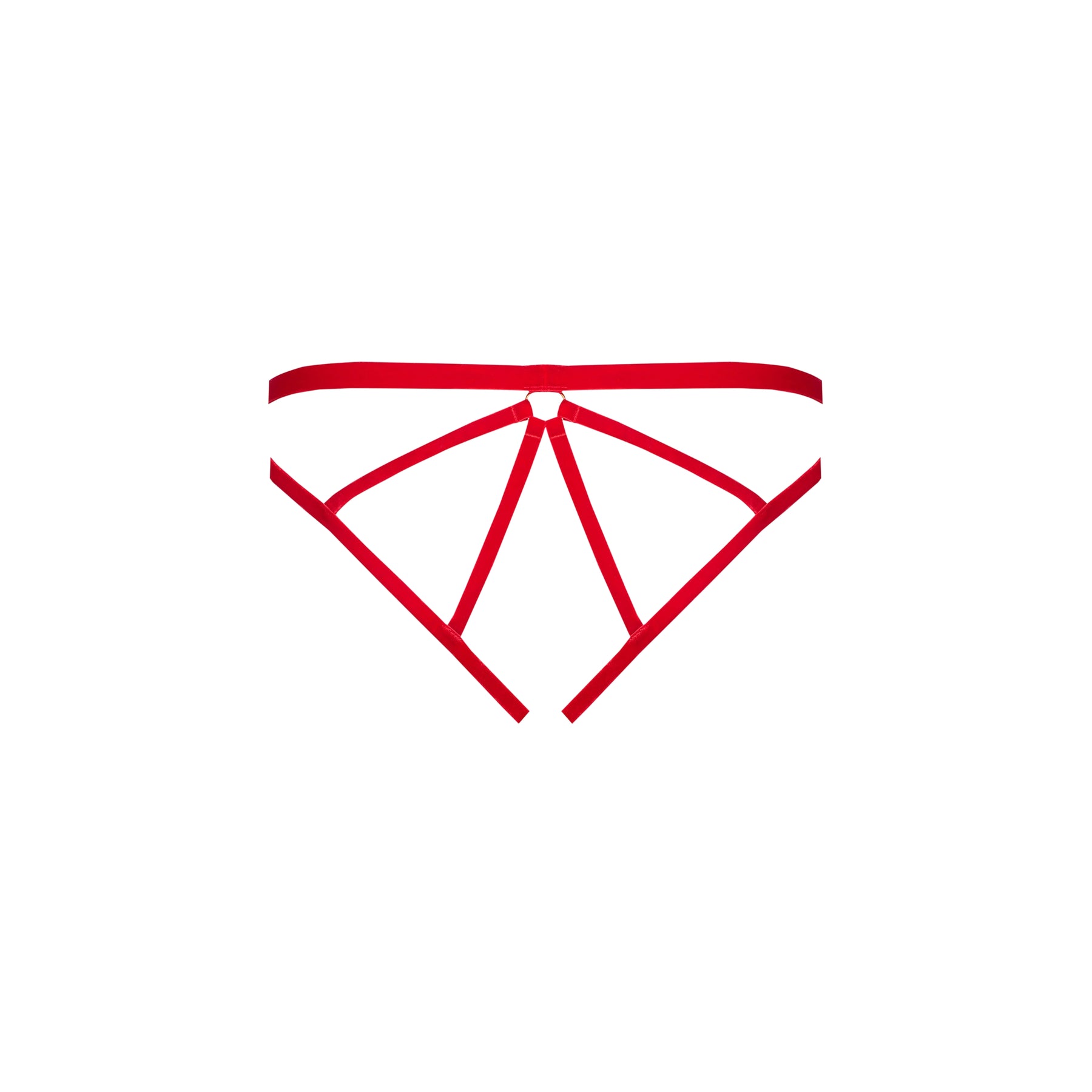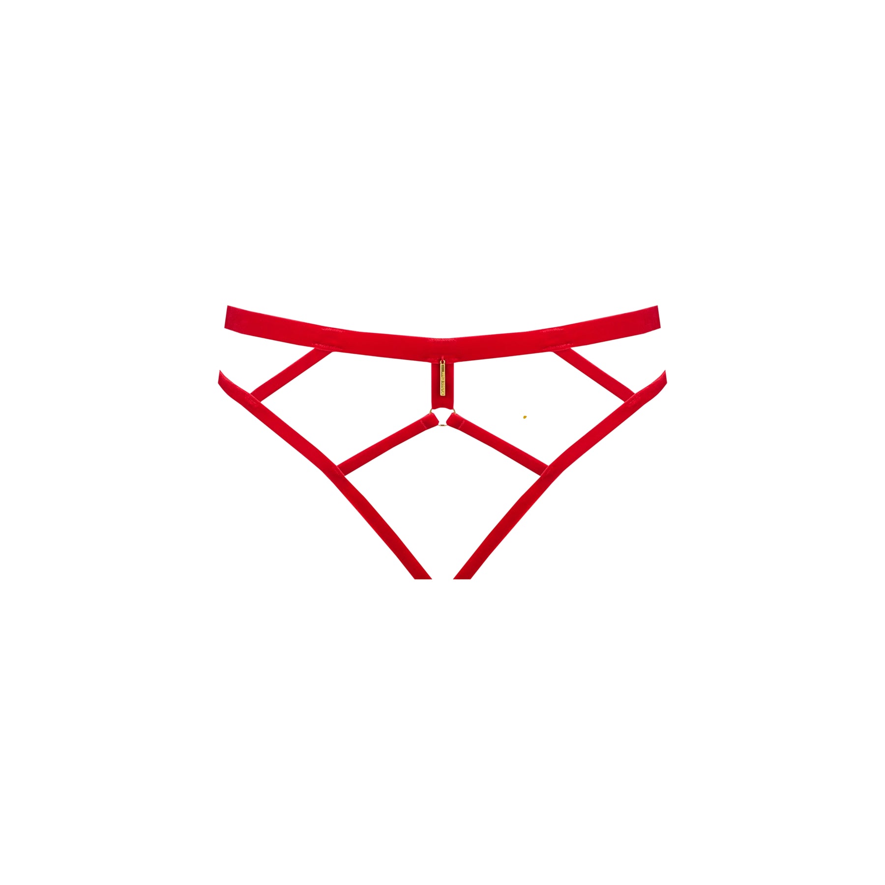 The open PARURE IN VELLUTO red panties play on the purity of lines and suggestion. Made of soft velvet to the touch, it reveals an open structure with refined geometry, enhanced by an engraved golden pendant Maison Close. Designed to be worn alone or attached to the coordinated harness, it creates the illusion of a bodysuit. It fits precisely and discreetly to the morphology.