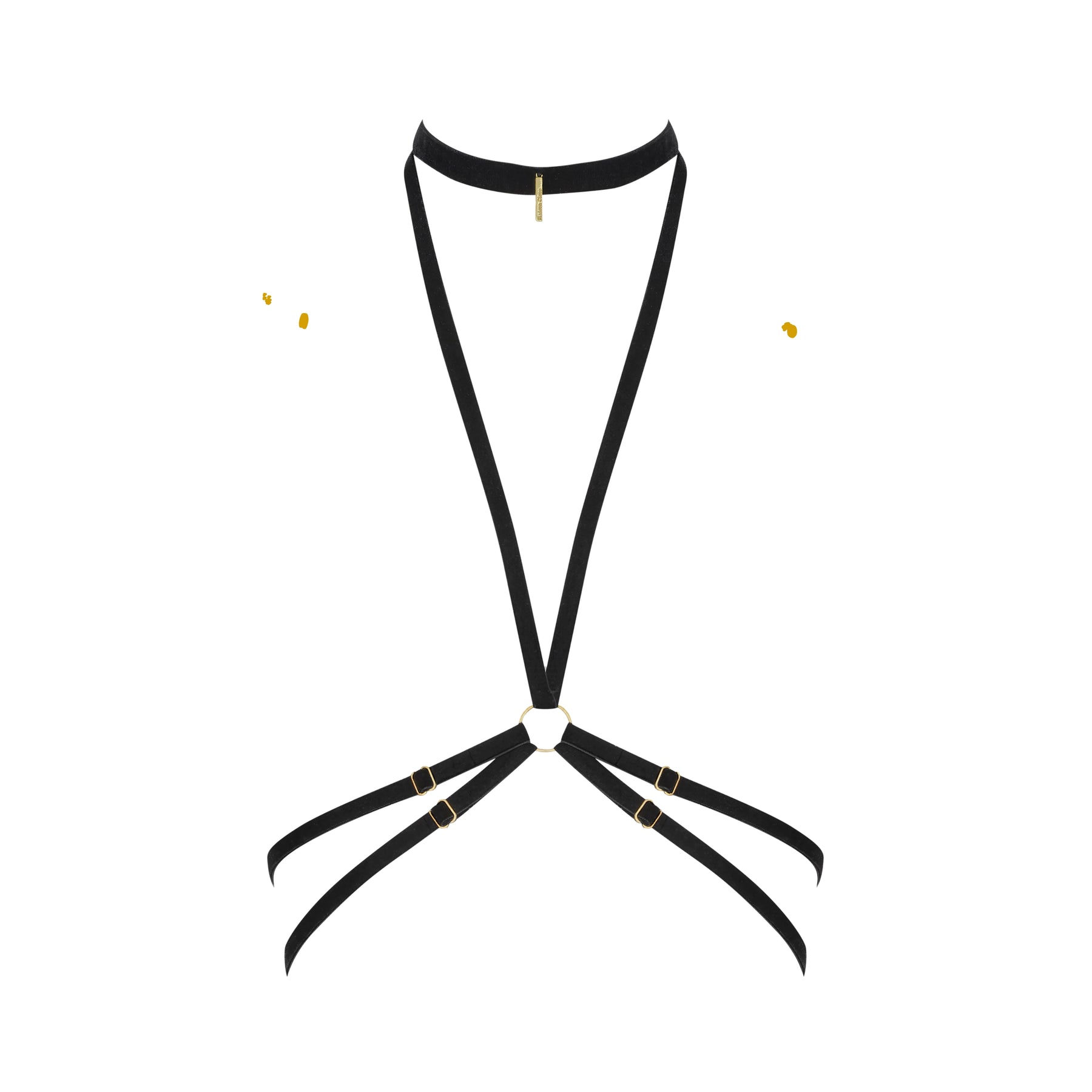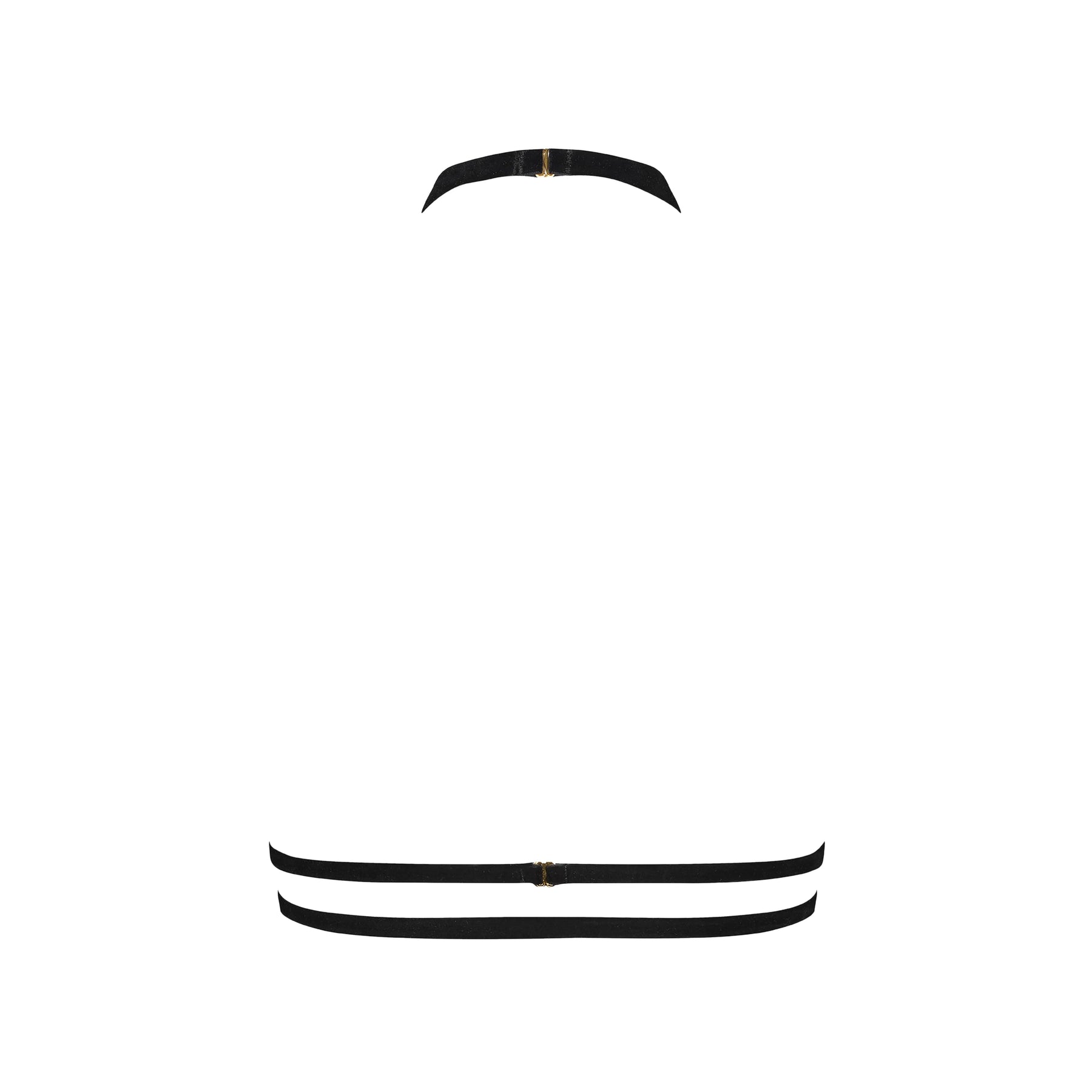 Un accessorio di lingerie modulabile, consegnato nel suo sacchetto in velluto nero.