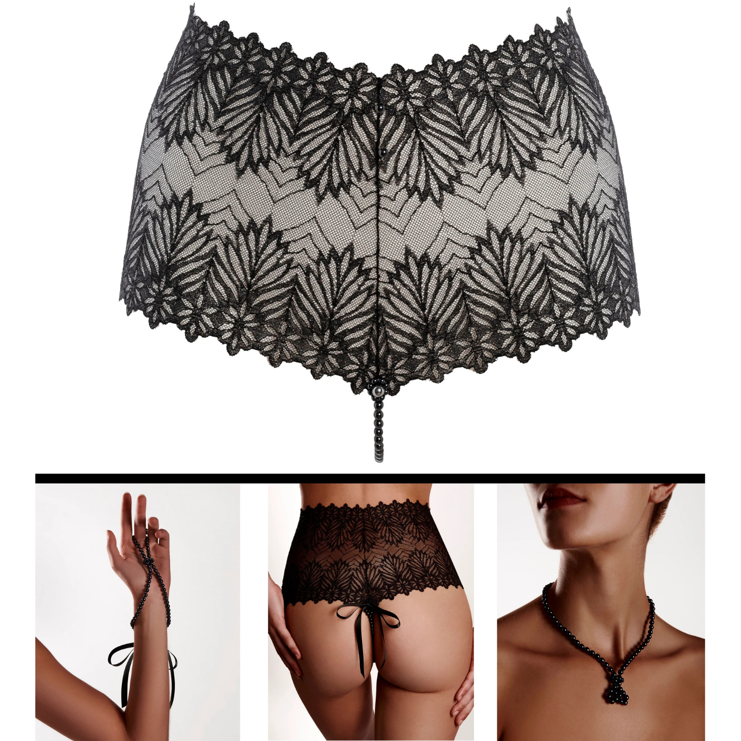 IMPORTANTE.- Con questo set non è possibile indossare contemporaneamente la collana, il braccialetto e il capo di lingerie. Se vuoi poter indossare contemporaneamente le diverse versioni (lingerie + collana o lingerie + braccialetto), devi acquistare un set aggiuntivo: Destinos Dark Pearls