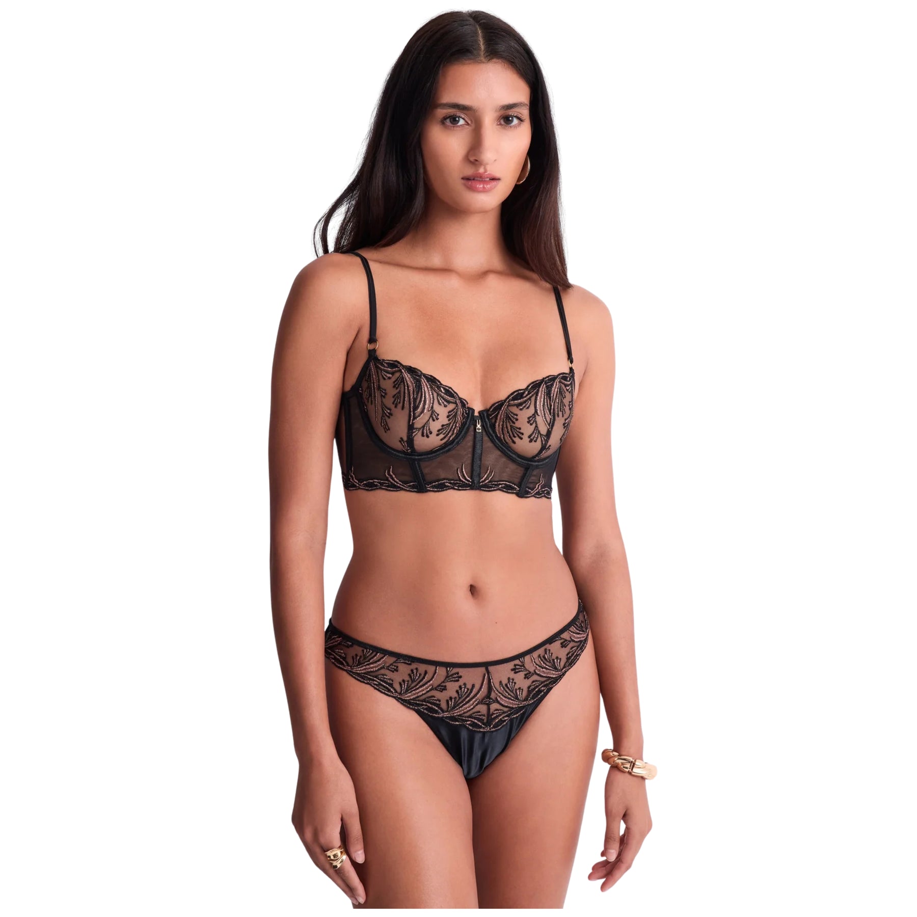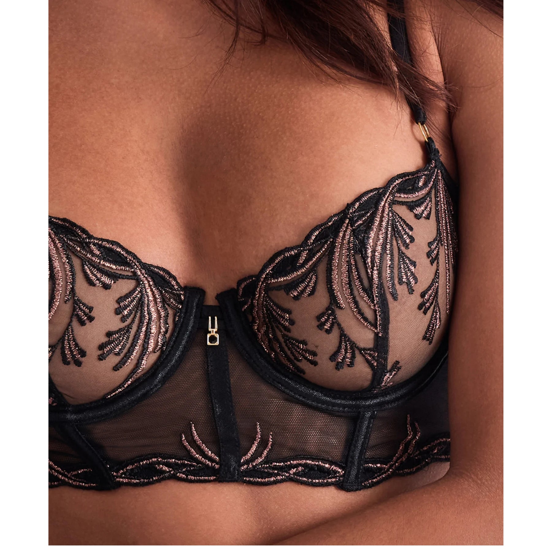 Reggiseno bustier Cosmic Romance con ferretto per un rinforzo maggiore, accessori in zamak dorato e spalline elastiche e regolabili.
