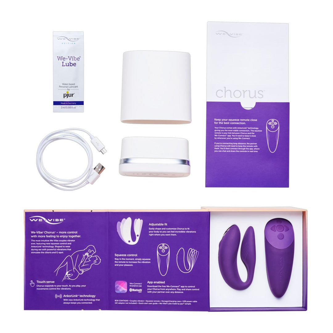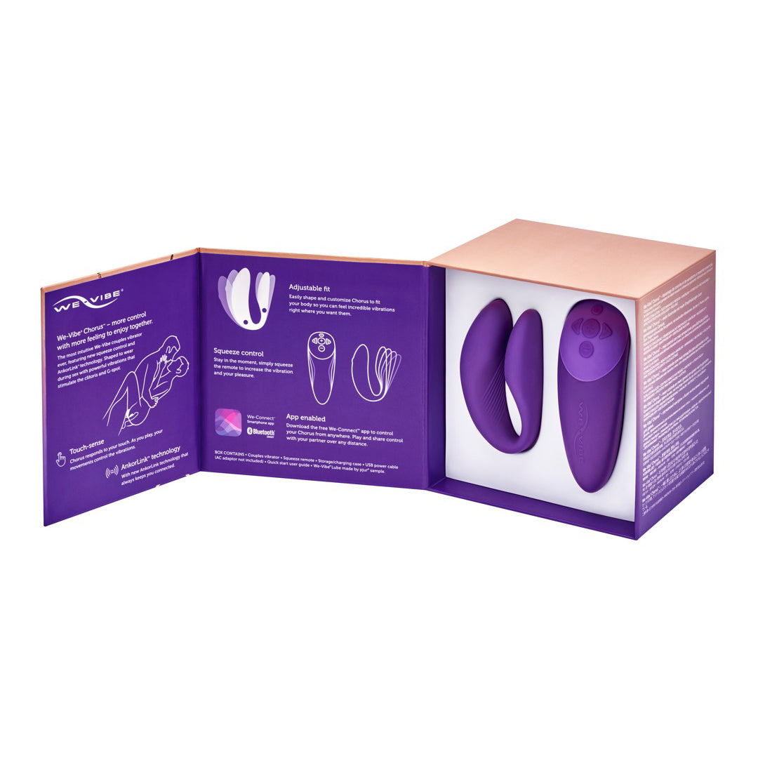 Con l’app gratuita We-Connect puoi giocare e condividere il controllo remoto di Chorus ovunque, creando vibrazioni personalizzate e divertendovi in coppia con altri sex toy We-Vibe.